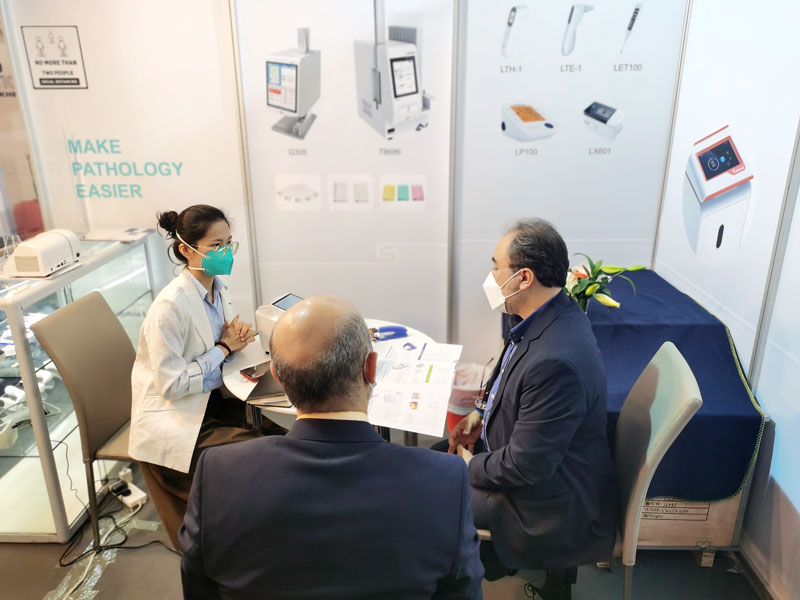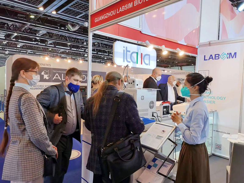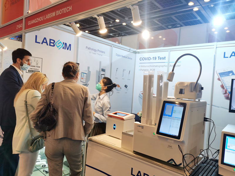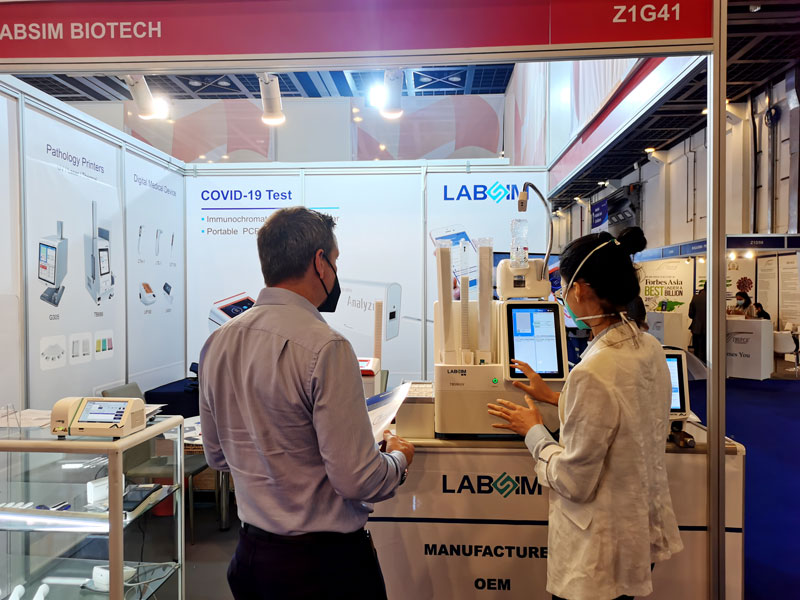 本屆展會上藍勃生物攜干式熒光免疫分析儀AFS-1000、手持式干式熒光免疫分析儀AFS430、膠體金免疫層析分析儀AGS1000,與組織盒激光打號機TB586UV、載玻片熱轉印打號機G304等明星產品亮相,展會現場吸引了大批觀眾前來溝通交流。